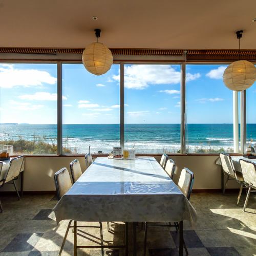 大型宴会に対応できる広々としたスペースを確保した店内は、ゆとりのあるテーブル配置で団体様にも安心です◎また、窓から10メートル先が浜辺で景色が一望できます!デートにもおすすめで、ご利用人数やシーンに合わせてレイアウト変更も可能で、特別な時間をサポートします!